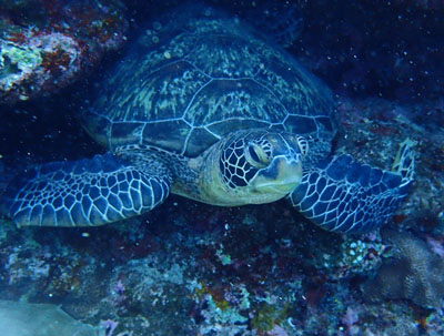 そのカメさんの甲羅に乗って、甲羅を啄んでいたゴイシギンポ♪ | ||||