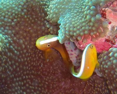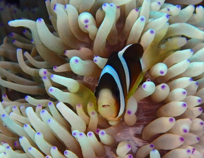イソギンチャクが綺麗なので、クマノミもエレガントに見えます♪