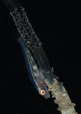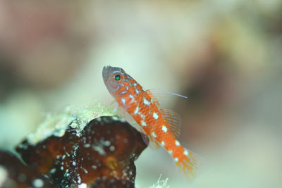 紹介したくても、直ぐにサンゴに隠れてしまい、写真の被写体としては躊躇してしまうのだが、マサノリさんは自力で粘って撮っていたソメワケヤッコ♪