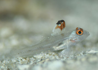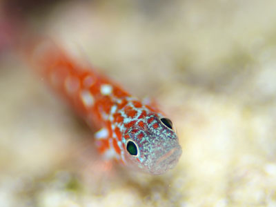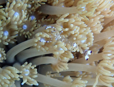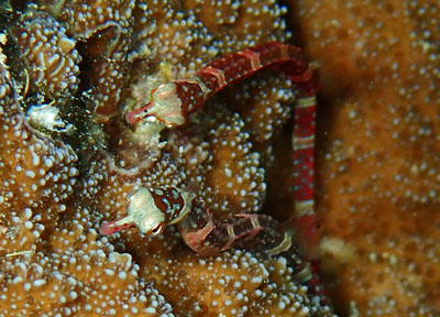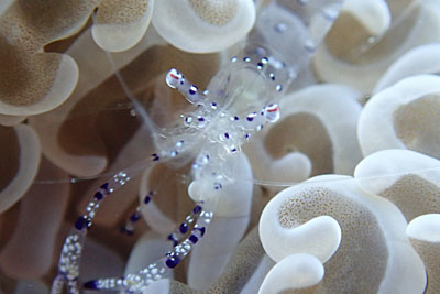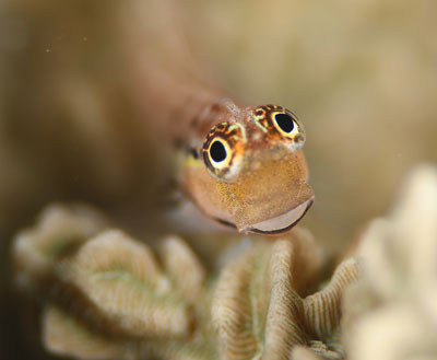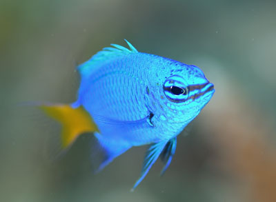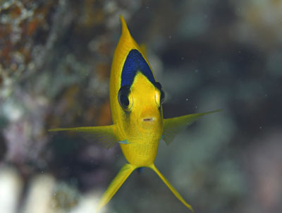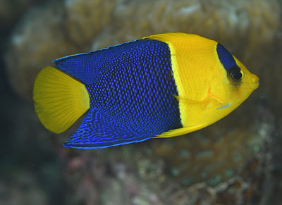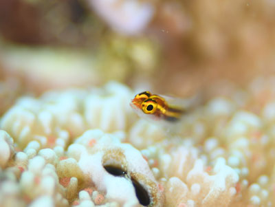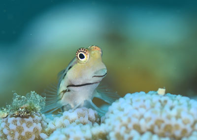 紹介したくても、直ぐにサンゴに隠れてしまい、写真の被写体としては躊躇してしまうのだが、マサノリさんは自力で粘って撮っていたソメワケヤッコ♪