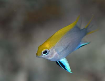 黒くて地味な?成魚からは想像が付かないほど綺麗なクロスズメダイの幼魚♪