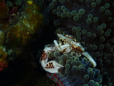コエダナガレハナサンゴに居たオランウータンクラブことミナミクモガニ♪ | ||||